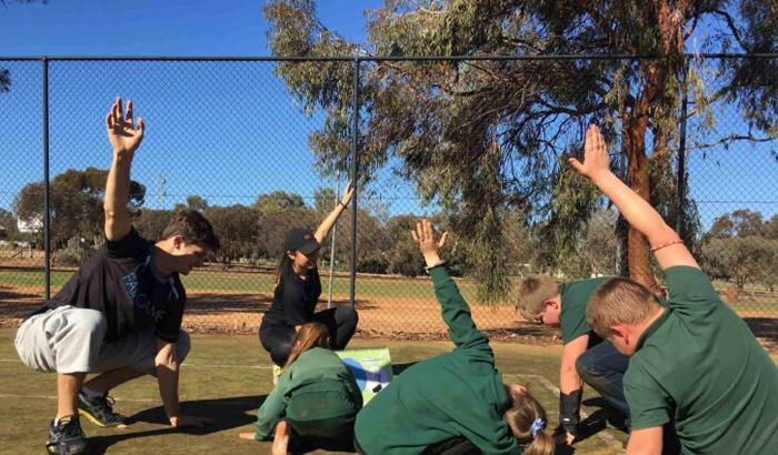 Fair Game provided fruit and morning tea, followed by a Wellness Walk-about yoga session in Pooncarie at the tiniest primary school (a total of 7 students currently enrolled there!)